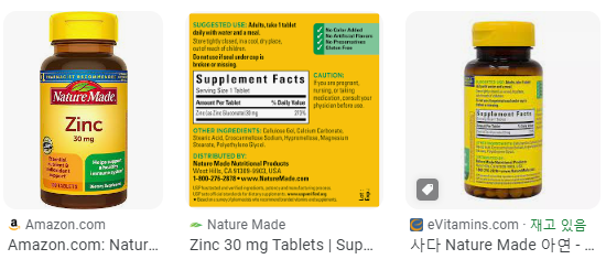 - 제품 특징: Nature Made Zinc는 비타민 C와 함께 복합 형태로 제공되어 흡수를 돕습니다.